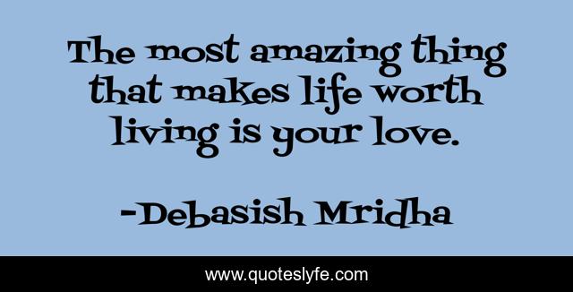 This page presents the quote "The most amazing thing that makes life worth living is your love.". Author of this quote is Debasish Mridha. This quote is about living, life, debasish, love, mridha, philosophy, worth, affection,.