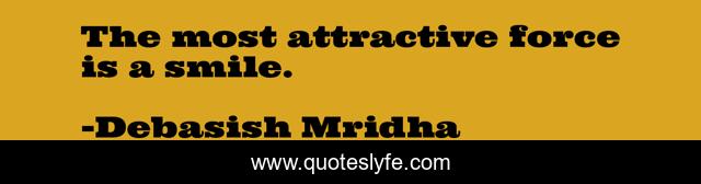 This page presents the quote "The most attractive force is a smile.". Author of this quote is Debasish Mridha. This quote is about attractive-force, power-of-a-smile, philosophy, debasish-mridha, quotes, inspirational, smile, enthusiasm, debasish-mridha-m-d,.