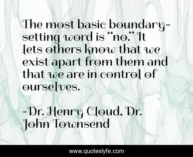 "Dr. Henry Cloud, Dr. John Townsend Quotes." Quoteslyfe.com, 2025. Sun. 07 Dec. 2025. <https://www.quoteslyfe.com/quote/The-most-basic-boundary-setting-word-is-35702>.