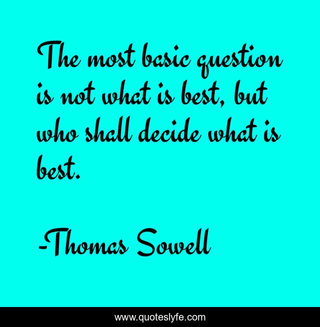 This page presents the quote "The most basic question is not what is best, but who shall decide what is best.". Author of this quote is Thomas Sowell. This quote is about most, question, decide,.