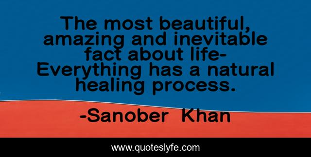 This page presents the quote "The most beautiful, amazing and inevitable fact about life- Everything has a natural healing process.". Author of this quote is Sanober Khan. This quote is about facts-of-life, life, positive, heal, motivational, poetry, encouragement, soulful, amazing,.