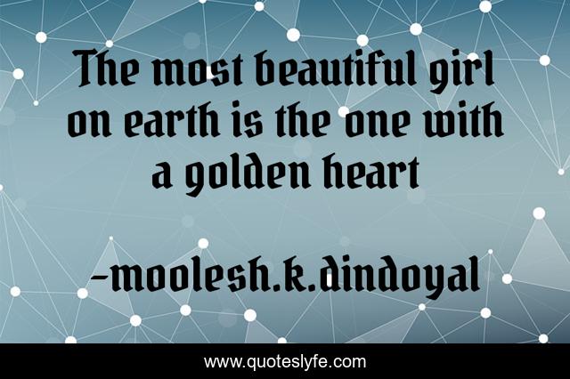 This page presents the quote "The most beautiful girl on earth is the one with a golden heart". Author of this quote is moolesh.k.dindoyal. This quote is about beautiful, heart, inspirational, enthusiasm,.