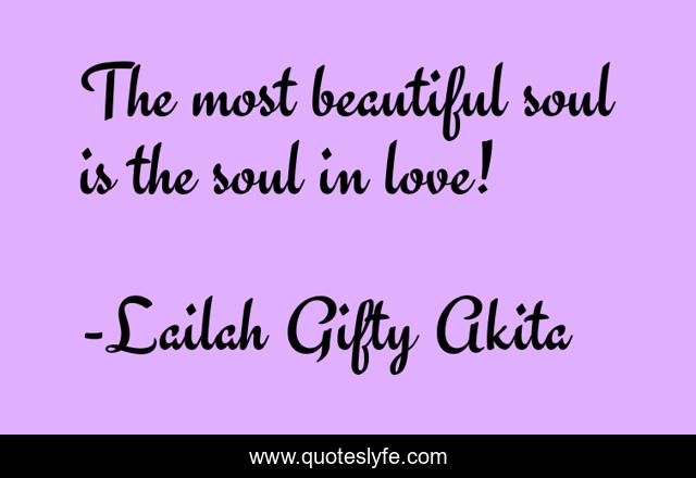 This page presents the quote "The most beautiful soul is the soul in love!". Author of this quote is Lailah Gifty Akita. This quote is about beautiful, wise-sayings, love, souls, affection,.