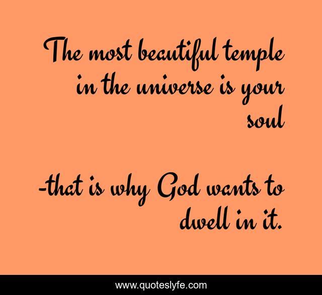 This page presents the quote "The most beautiful temple in the universe is your soul". Author of this quote is that is why God wants to dwell in it.. .