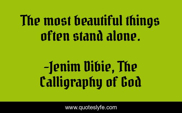 "Jenim Dibie, The Calligraphy of God Quotes." Quoteslyfe.com, 2025. Mon. 08 Dec. 2025. <https://www.quoteslyfe.com/quote/The-most-beautiful-things-often-stand-alone-61259>.