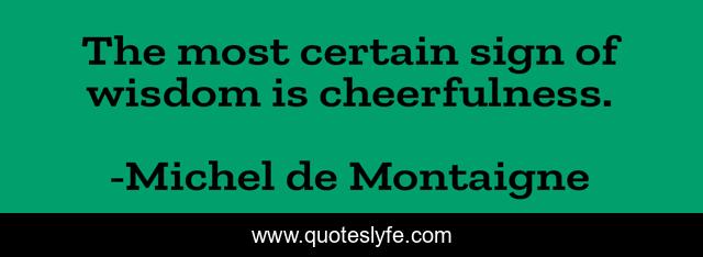 This page presents the quote "The most certain sign of wisdom is cheerfulness.". Author of this quote is Michel de Montaigne. This quote is about most, cheerfulness, sign,.