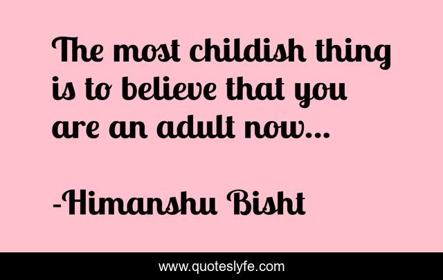 This page presents the quote "The most childish thing is to believe that you are an adult now...". Author of this quote is Himanshu Bisht. This quote is about life, adulthood, childhood, woodcutters,.