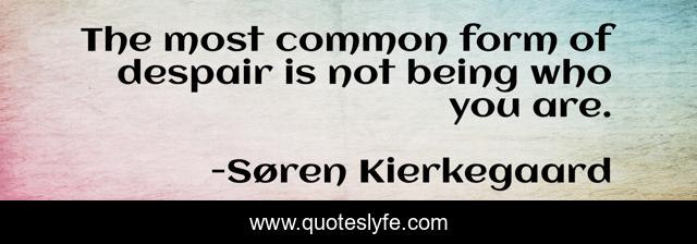 This page presents the quote "The most common form of despair is not being who you are.". Author of this quote is Søren Kierkegaard. This quote is about self-betrayal, truth,.