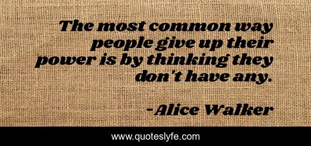 This page presents the quote "The most common way people give up their power is by thinking they don't have any.". Author of this quote is Alice Walker. This quote is about enthusiasm, inspirational,.