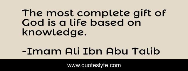 This page presents the quote "The most complete gift of God is a life based on knowledge.". Author of this quote is Imam Ali Ibn Abu Talib. This quote is about saudi-arabia, iran, sufi, shia, najaf, hazrat-ali, islam, iraq, sunni,.