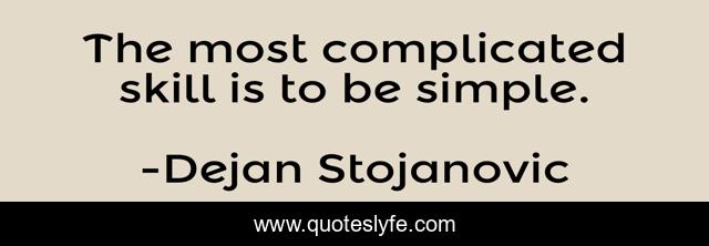 This page presents the quote "The most complicated skill is to be simple.". Author of this quote is Dejan Stojanovic. This quote is about literature, simple, dejan-stojanovic, poetry, wisdom, quotes, complicated, quotes-to-live-by, skill,.