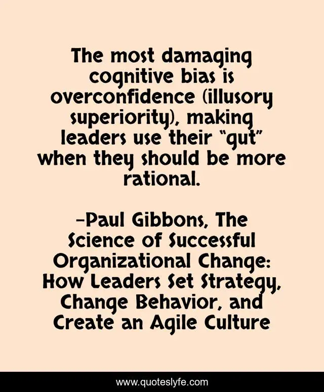 "Paul Gibbons, The Science of Successful Organizational Change: How Leaders Set Strategy, Change Behavior, and Create an Agile Culture Quotes." Quoteslyfe.com, 2025. Fri. 05 Dec. 2025. <https://www.quoteslyfe.com/quote/The-most-damaging-cognitive-bias-is-overconfidence-232159>.