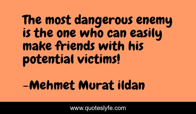 This page presents the quote "The most dangerous enemy is the one who can easily make friends with his potential victims!". Author of this quote is Mehmet Murat ildan. This quote is about enemy, dangerous-people, mehmet-murat-ildan, make-friend, turkish, ildan-wisdom, dangerous, turkish-playwrights, turkish-wisdom-words,.