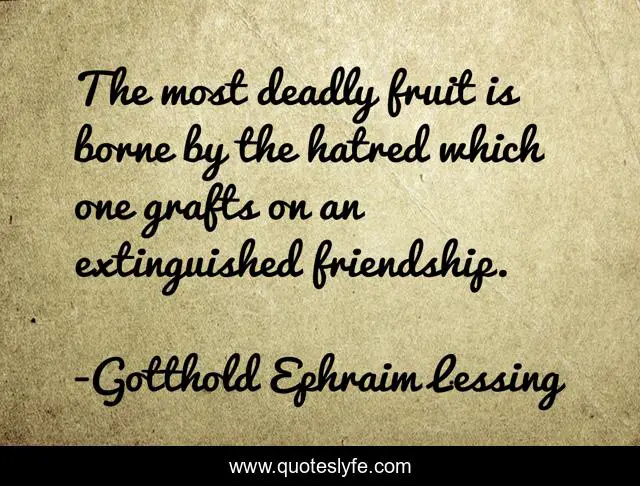 This page presents the quote "The most deadly fruit is borne by the hatred which one grafts on an extinguished friendship.". Author of this quote is Gotthold Ephraim Lessing. This quote is about hatred, fruit, which,.