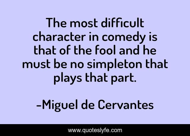 This page presents the quote "The most difficult character in comedy is that of the fool and he must be no simpleton that plays that part.". Author of this quote is Miguel de Cervantes. .