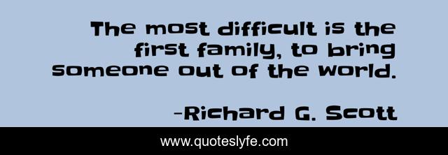 This page presents the quote "The most difficult is the first family, to bring someone out of the world.". Author of this quote is Richard G. Scott. This quote is about world, difficult, bring,.