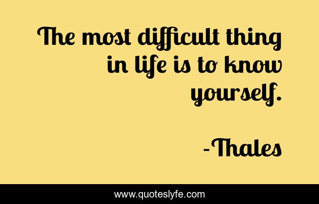 This page presents the quote "The most difficult thing in life is to know yourself.". Author of this quote is Thales. This quote is about self, knowledge,.