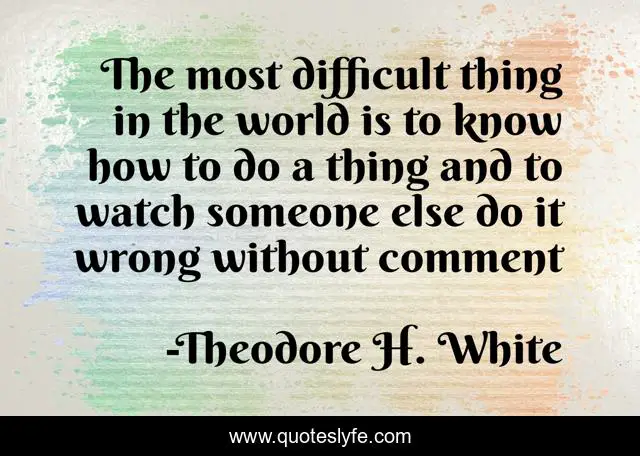 This page presents the quote "The most difficult thing in the world is to know how to do a thing and to watch someone else do it wrong without comment". Author of this quote is Theodore H. White. .