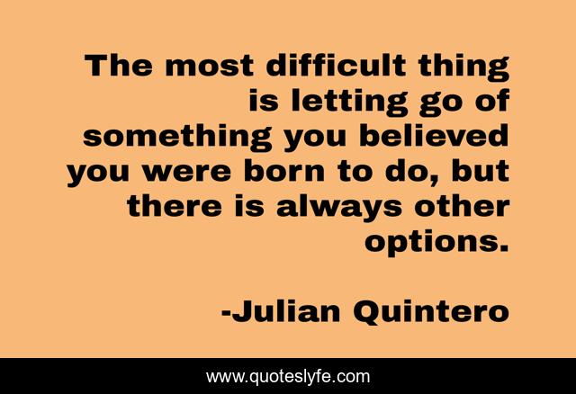 This page presents the quote "The most difficult thing is letting go of something you believed you were born to do, but there is always other options.". Author of this quote is Julian Quintero. This quote is about pain, truth, reality,.