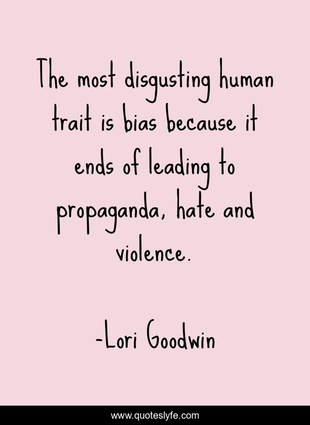 This page presents the quote "The most disgusting human trait is bias because it ends of leading to propaganda, hate and violence.". Author of this quote is Lori Goodwin. This quote is about bias, hate, human-traits, violence,.