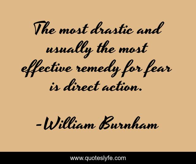 This page presents the quote "The most drastic and usually the most effective remedy for fear is direct action.". Author of this quote is William Burnham. This quote is about success, happiness,.