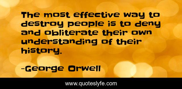 This page presents the quote "The most effective way to destroy people is to deny and obliterate their own understanding of their history.". Author of this quote is George Orwell. This quote is about history, propaganda, rewriting-history,.