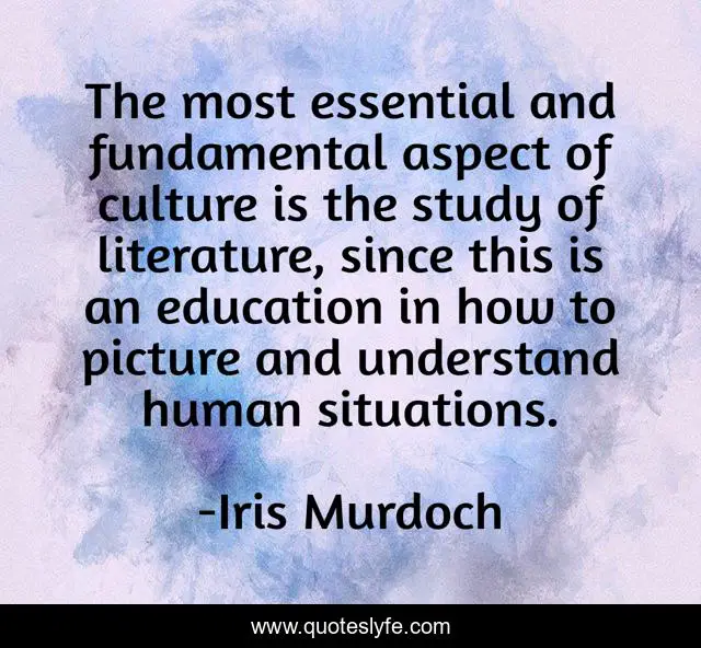 This page presents the quote "The most essential and fundamental aspect of culture is the study of literature, since this is an education in how to picture and understand human situations.". Author of this quote is Iris Murdoch. .