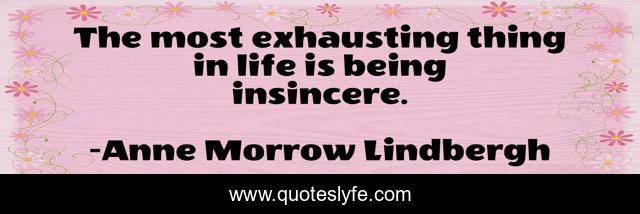 This page presents the quote "The most exhausting thing in life is being insincere.". Author of this quote is Anne Morrow Lindbergh. .