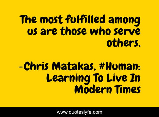 This page presents the quote "The most fulfilled among us are those who serve others.". Author of this quote is Chris Matakas, #Human: Learning To Live In Modern Times. This quote is about serve, fulfillment, service,.