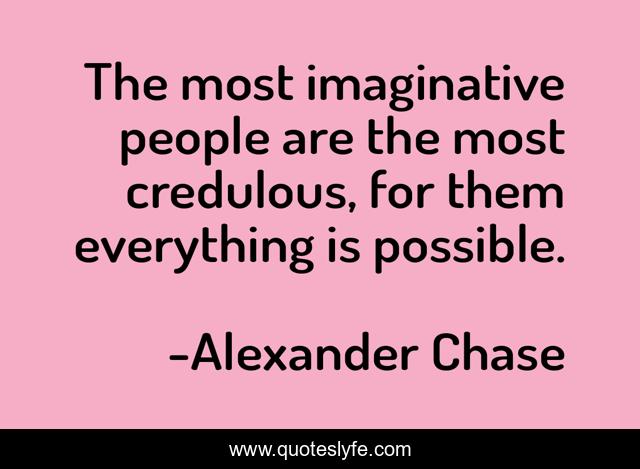 This page presents the quote "The most imaginative people are the most credulous, for them everything is possible.". Author of this quote is Alexander Chase. This quote is about everything, possible, people,.
