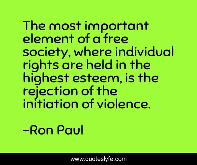 This page presents the quote "The most important element of a free society, where individual rights are held in the highest esteem, is the rejection of the initiation of violence.". Author of this quote is Ron Paul. This quote is about violence, rejection, free,.