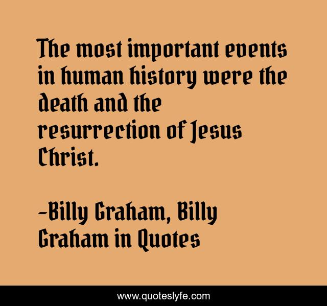 This page presents the quote "The most important events in human history were the death and the resurrection of Jesus Christ.". Author of this quote is Billy Graham, Billy Graham in Quotes. This quote is about resurrection, billy-graham,.