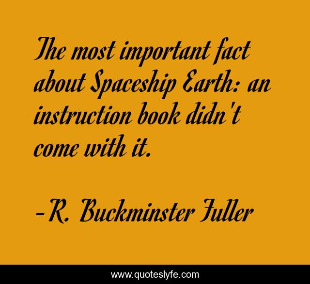 This page presents the quote "The most important fact about Spaceship Earth: an instruction book didn't come with it.". Author of this quote is R. Buckminster Fuller. .