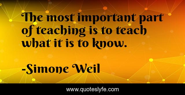 This page presents the quote "The most important part of teaching is to teach what it is to know.". Author of this quote is Simone Weil. .