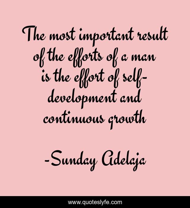This page presents the quote "The most important result of the efforts of a man is the effort of self-development and continuous growth". Author of this quote is Sunday Adelaja. This quote is about life, self-development, growth, result, greatness, continuous-growth, effort,.