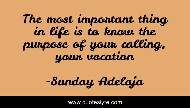 This page presents the quote "The most important thing in life is to know the purpose of your calling, your vocation". Author of this quote is Sunday Adelaja. This quote is about life, destiny, people, calling, purpose, vocation,.