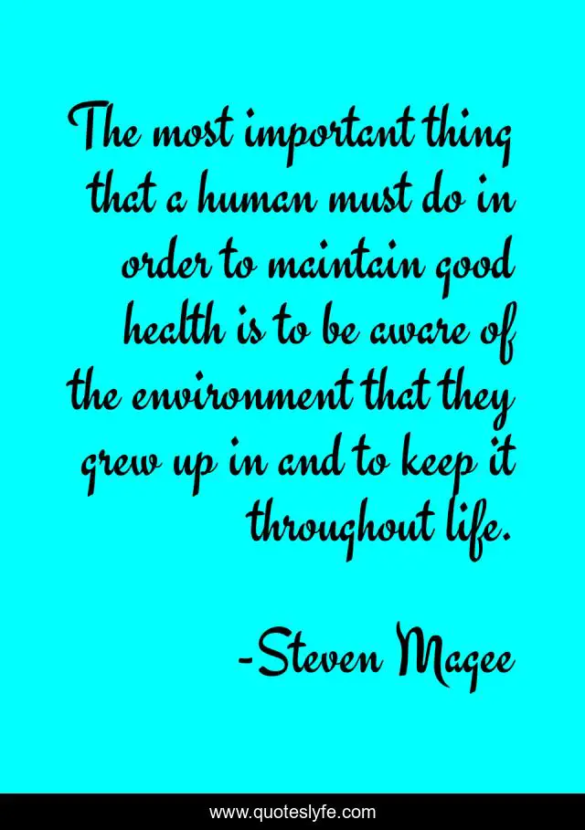 This page presents the quote "The most important thing that a human must do in order to maintain good health is to be aware of the environment that they grew up in and to keep it throughout life.". Author of this quote is Steven Magee. This quote is about life, good, most, up, aware, environment, thing, grew, health,.