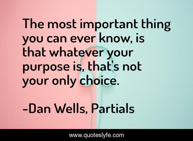 This page presents the quote "The most important thing you can ever know, is that whatever your purpose is, that's not your only choice.". Author of this quote is Dan Wells, Partials. This quote is about young-adult, dystopian, science-fiction,.
