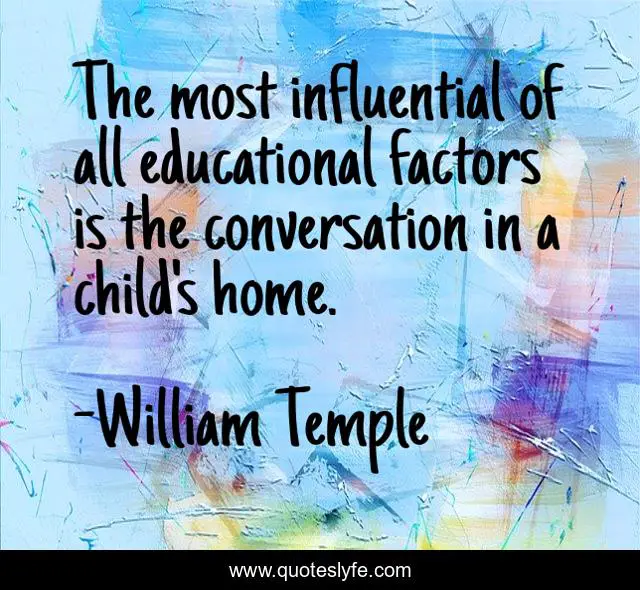 This page presents the quote "The most influential of all educational factors is the conversation in a child's home.". Author of this quote is William Temple. This quote is about home, child, conversation,.