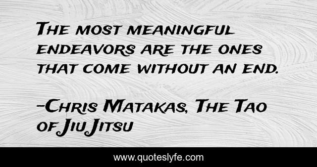 This page presents the quote "The most meaningful endeavors are the ones that come without an end.". Author of this quote is Chris Matakas, The Tao of Jiu Jitsu. This quote is about meaning, life, goals,.