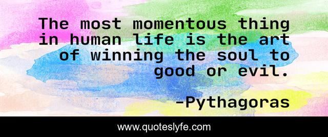 This page presents the quote "The most momentous thing in human life is the art of winning the soul to good or evil.". Author of this quote is Pythagoras. This quote is about life, good, evil,.