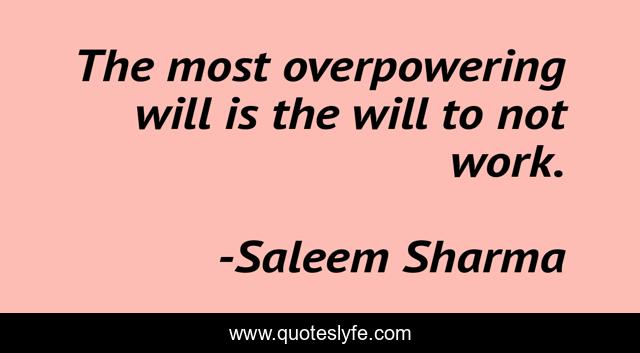 This page presents the quote "The most overpowering will is the will to not work.". Author of this quote is Saleem Sharma. This quote is about humorous, life, learning,.