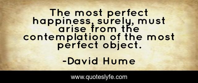 This page presents the quote "The most perfect happiness, surely, must arise from the contemplation of the most perfect object.". Author of this quote is David Hume. .