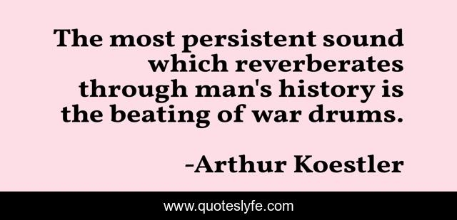 This page presents the quote "The most persistent sound which reverberates through man's history is the beating of war drums.". Author of this quote is Arthur Koestler. This quote is about history, through, man,.