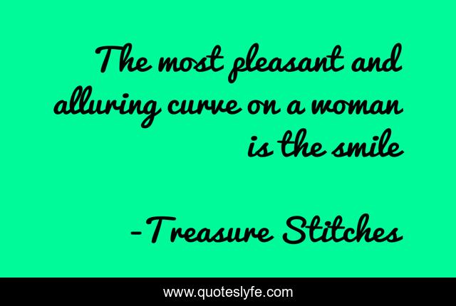 This page presents the quote "The most pleasant and alluring curve on a woman is the smile". Author of this quote is Treasure Stitches. This quote is about fashion, humor, beauty, elegance,.