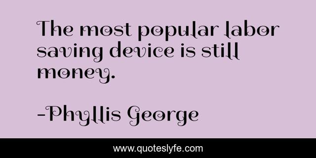 This page presents the quote "The most popular labor saving device is still money.". Author of this quote is Phyllis George. This quote is about humor, truth,.