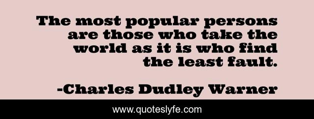 This page presents the quote "The most popular persons are those who take the world as it is who find the least fault.". Author of this quote is Charles Dudley Warner. .
