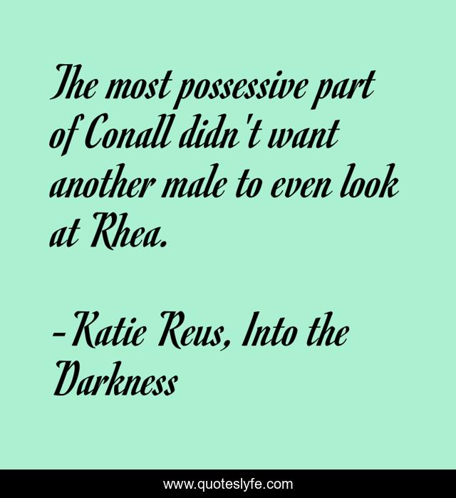 This page presents the quote "The most possessive part of Conall didn't want another male to even look at Rhea.". Author of this quote is Katie Reus, Into the Darkness. This quote is about dragons, paranormal-romance, shifter-romance, demons,.