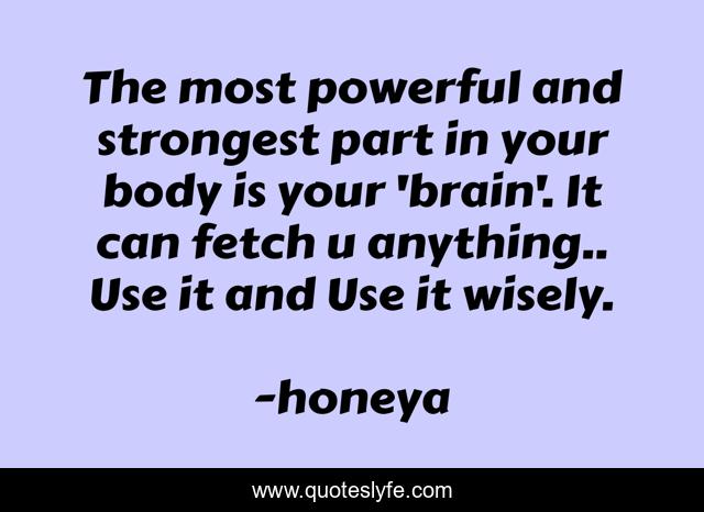 This page presents the quote "The most powerful and strongest part in your body is your 'brain'. It can fetch u anything.. Use it and Use it wisely.". Author of this quote is honeya. This quote is about body, wise-words, wise, powerful, brain, life-lessons,.