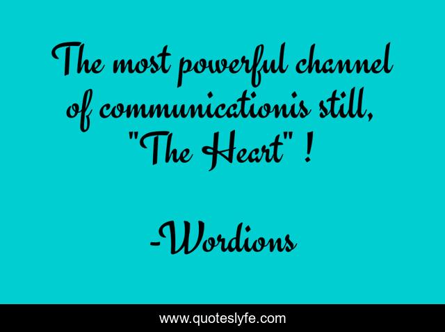 This page presents the quote "The most powerful channel of communicationis still, "The Heart" !". Author of this quote is Wordions. This quote is about communication, the-heart, wordions, channel-of-communication, wordions-com,.